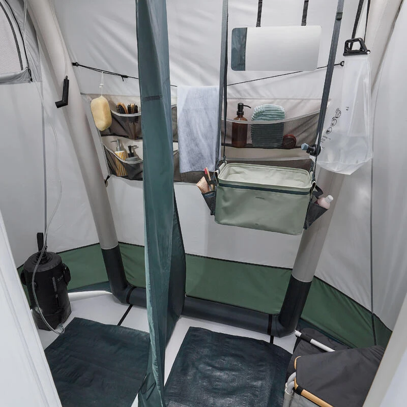 Besoin de plus de confort et d’intimité ? Cette tente de douche de camping gonflable et facile à installer vous suivra dans vos séjours itinérants ou en natureUne tente de douche de camping de 2,5 m² modulable en plusieurs espaces : douche, lavabo, toilettes sèches et équipée de rangements. Compacte une fois pliée, elle se range facilement dans un véhicule.